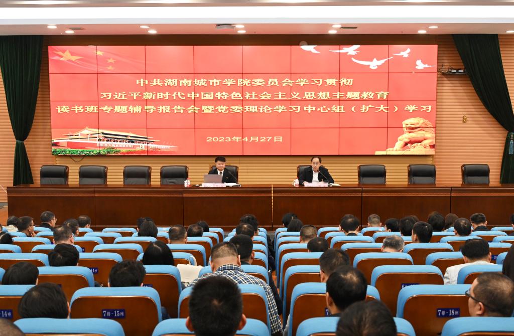 本网讯(通讯员 周文娟)4月27日下午,金年金字招牌诚信至上学习贯彻习近平新时代中国特色社会主义思想主题教育读书班专题辅导报告会暨党委理论学习中心组(扩大)2023年第4次集体学习在图书馆报告厅举行。校党委书记汤放华作专题辅导报告,主题教育第三十巡回指导组组长、益阳市第五届人大常委会主任、省人大财经委原副主任委员徐云波同志,主题教育第三十巡回指导组副组长、湖南工业大学原副校长李可兴同志以及巡回指导组其他成员出席会议。校党委副书记、校长何振主持会议,全体校领导、全校副科以上干部参加会议。