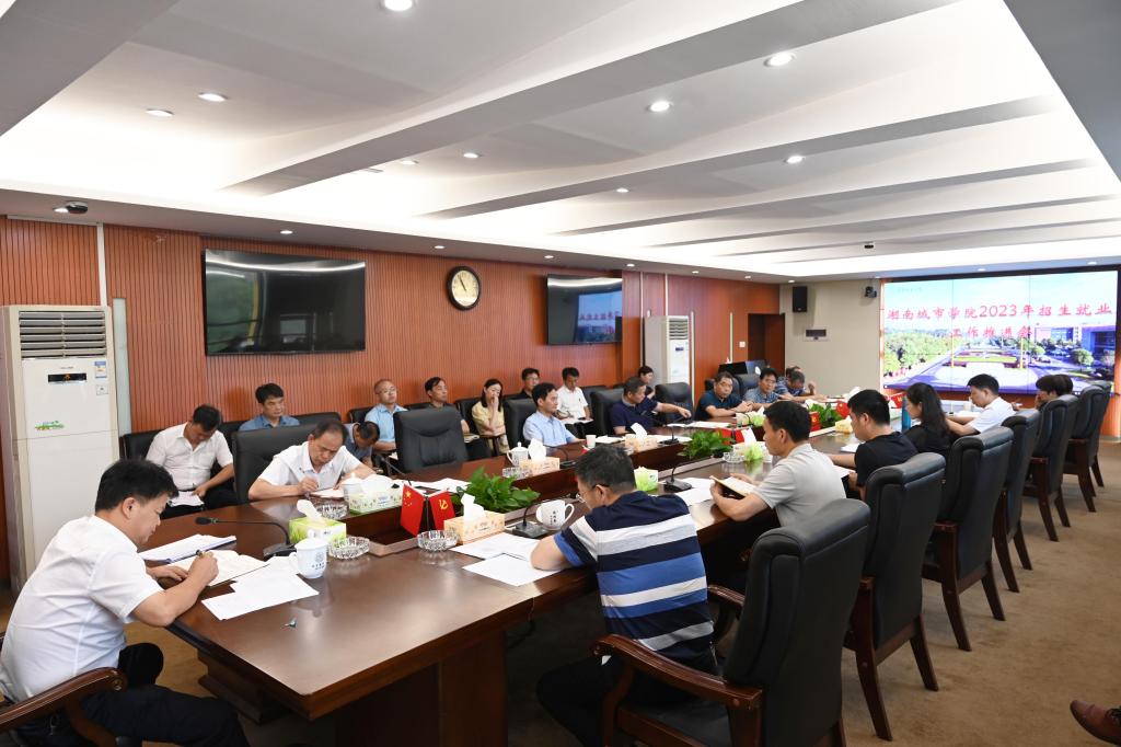 汤放华对扎实做好下一阶段招生宣传与毕业生就业工作提出了具体要求。他指出,招生就业处应进一步细化工作方案,有步骤、有计划、有针对性地开展工作。招生工作方面,各二级学院要在“新、实、效”上下功夫,加强学科专业宣传力度;要加强与学生生源地中学的常态化联系,切实达到提高生源质量的效果。就业工作方面,要教育引导毕业生充分认清当前严峻就业形势,合理调整就业预期,不断提升就业能力,引导毕业生积极主动就业。