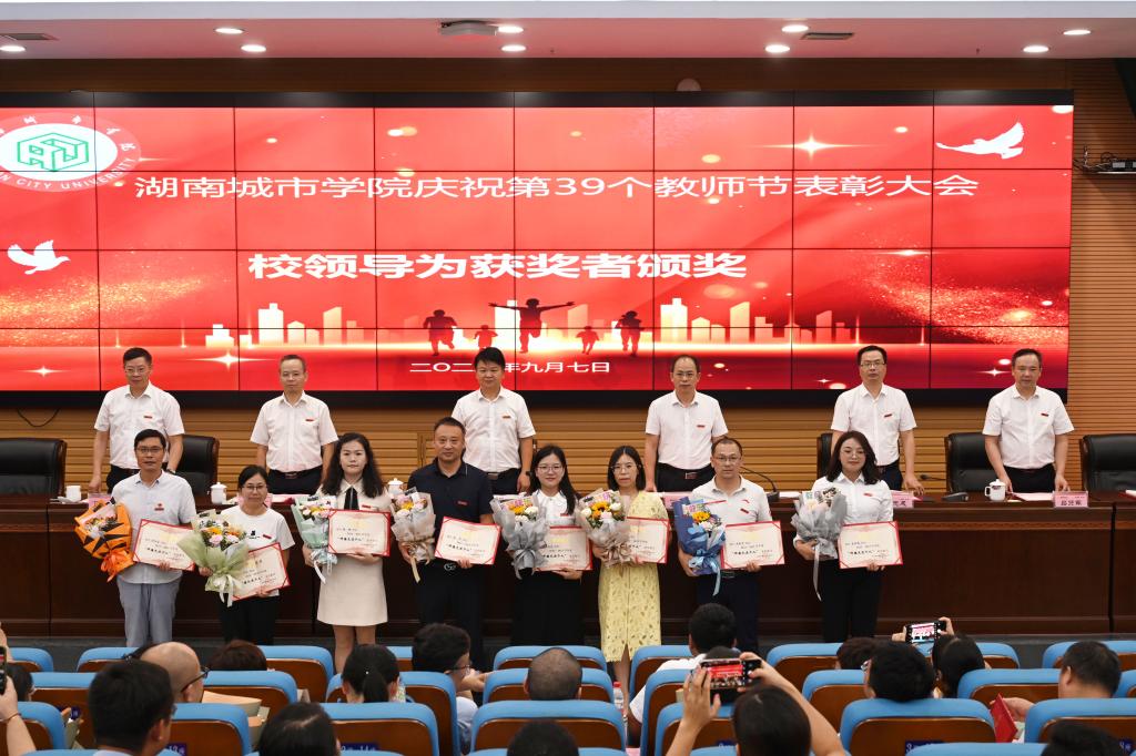 何振宣读了国家基金项目获得者和新增硕士点及省部级以上教学科研平台基地名单;副校长夏宏宇宣读了湖南省教育工会2022年度芙蓉百岗明星和学校2022-2023学年度“师德先进个人”名单;副校长袁志成宣读了专业认证通过情况、省级教学竞赛获奖者名单、省级创新创业教育中心和教育基地情况;纪委书记陈列尊宣读了2022年度单位目标管理考核先进集体及单项奖,2023年“光荣从教三十年”奉献奖、优秀教育工作者、优秀教师名单。