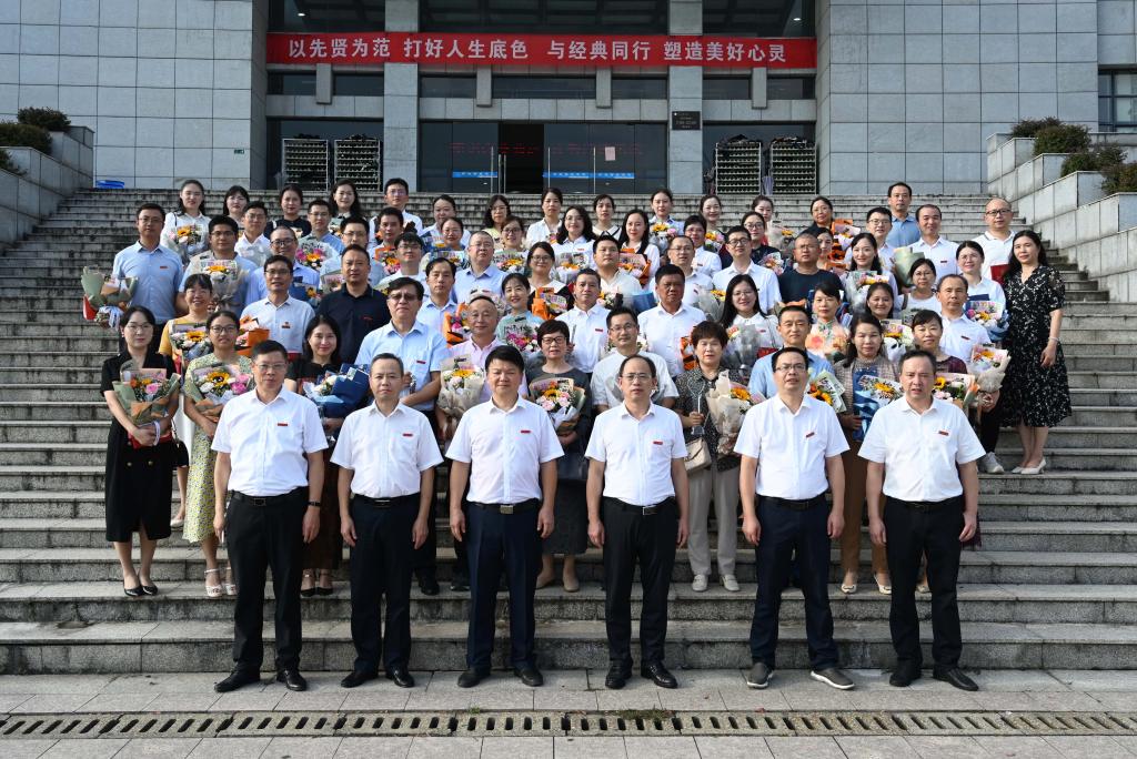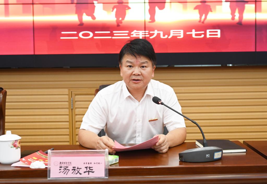 汤放华代表学校向全校广大教师、教育工作者和离退休教职工致以节日的问候和崇高的敬意,向获得表彰的先进个人和集体表示热烈的祝贺,并简要介绍了过去一年学校在师德师风建设、教师管理改革和待遇保障、教师队伍建设、学科专业建设、教学科研、办学条件等方面取得的丰硕成果。他表示,学校以办好人民满意的教育为目标,主动服务实现湖南省“三高四新”美好蓝图,坚持立德树人,深入开展学习贯彻习近平新时代中国特色社会主义思想主题教育,汇聚起攻坚克难、团结奋进的强大力量,推动了学校高质量发展。