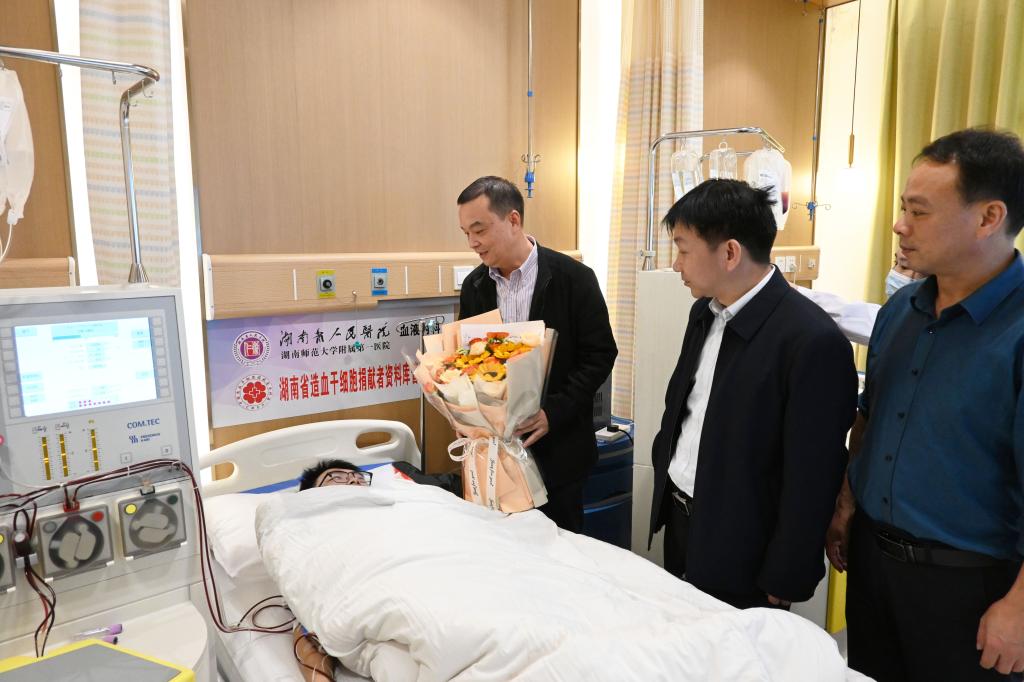 本网讯(记者 文彦波)安静的采集室内,鲜红的血液经由一根连接管,从手臂处缓缓流向一旁正在运作的血细胞分离机,造血干细胞一点点地被分离出来。10月23日,金年金字招牌诚信至上人文学院大二学生肖友钧,在湖南省人民医院成功捐献造血干细胞。经过整整5个小时的采集,288毫升的造血干细胞混悬液被顺利采集出来。肖友钧成为中华骨髓库第16235例、益阳市第41例造血干细胞捐献者,为素不相识的白血病患者重燃生命之光。