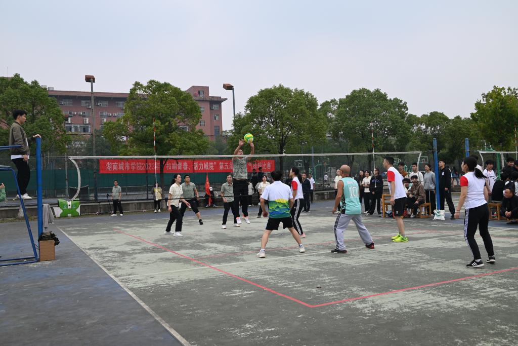 本次比赛由校工会主办,体育学院承办,分预赛、决赛2个阶段,其中预赛阶段分成A、B两组,采用单循环赛,每组前四名出线;决赛阶段,由出线的8个队采用单淘汰决出名次。赛场上,各参赛队伍本着“友谊第一,比赛第二”的原则,全身心地投入到比赛中。运动员分工协作、配合默契,敢打敢拼,接球、传球、起跳、扣杀……每一个动作都发挥得淋漓尽致,个个斗志昂扬,为观众呈现了一场场扣人心弦的精彩对决。裁判员恪尽职守,公正严明。同时,为活跃赛事气氛,各二级学院分工会还组织了啦啦队表演,为赛事增添了一道靓丽的风景线。
