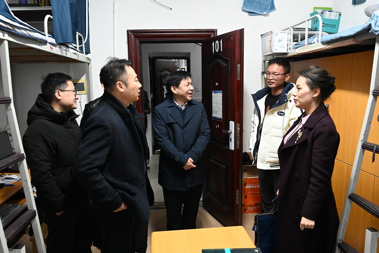 随后,督查组成员来到学生宿舍10栋,实地查看金年金官网学生宿舍改造情况。“‘四改六’之后,大家住得还习惯吗?”走进市测院学生宿舍,督查组成员热情地跟同学们打招呼。当得到肯定的回答后,督查组成员连连点头,并与同学们进行了简短交流。据悉,今年以来,为满足学生住宿需求,学校利用暑期对学生宿舍10栋、11栋进行了“四改六”,新增学生床位670个。学生宿舍25栋目前也已进入招标流程,明年建成后,可新增床位1797个,将极大缓解金年金官网床位紧张的局面。
