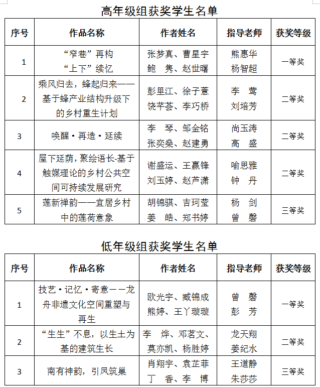 湖南省大学生可持续建筑设计竞赛是全省普通高校大学生学科竞赛活动,旨在进一步深化省内各高校建筑学等相关专业教学改革,提升人才培养质量,加强相关院系之间的学科交流,展现学生的综合实践能力和专业教育教学成果。本次竞赛以“重生计划--乡村绿色建筑”为主题,共有来自省内包括中南大学、湖南大学等在内的17所高校参加,通过各高校校赛选拔,共收到17所高校288组作品,其中高年级组178份,低年级组110份,经由省内建筑知名专家组成的评审委员会组织复赛,金年金官网建筑与城市规划学院共有8件作品入围,最终荣获高年级组一等奖1项,二等奖3项,三等奖1项;低年级组一等奖1项、二等奖1项、三等奖1项。同时,曾磬和熊惠华两位老师获评竞赛优秀指导老师。