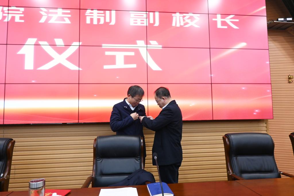 会前,学校举行了简短的授聘仪式,聘任胡安邦担任金年金官网法治副校长。何振为其颁发聘书、佩戴校徽。