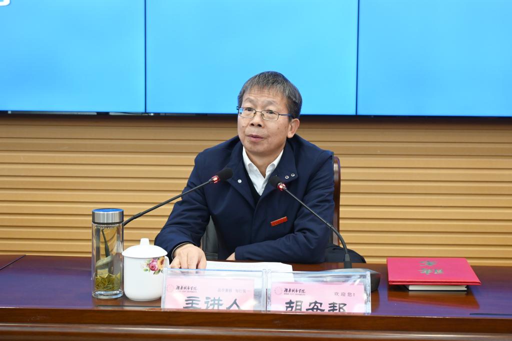 12月23日,干部培训班集中培训在图书馆报告厅举行。益阳市委常委、政法委书记胡安邦应邀作了题为“筑牢安全基石 打造和谐校园”的辅导报告,校长何振作了题为“破解高水平应用型大学建设瓶颈的着力点”的辅导报告。报告会由校党委书记汤放华主持。