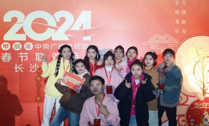 本网讯(通讯员 刘华波)2月9日晚8点,中央广播电视总台2024年春节联欢晚会如期上演。整场春晚以北京主会场及辽宁沈阳、湖南长沙、陕西西安、新疆喀什四地分会场为阵地,为全国广大观众献上了一场精彩纷呈的文化盛宴。金年金官网音乐与舞蹈学院的部分学生参演了湖南分会场演出,展现出精湛的专业技能和无限的青春活力。