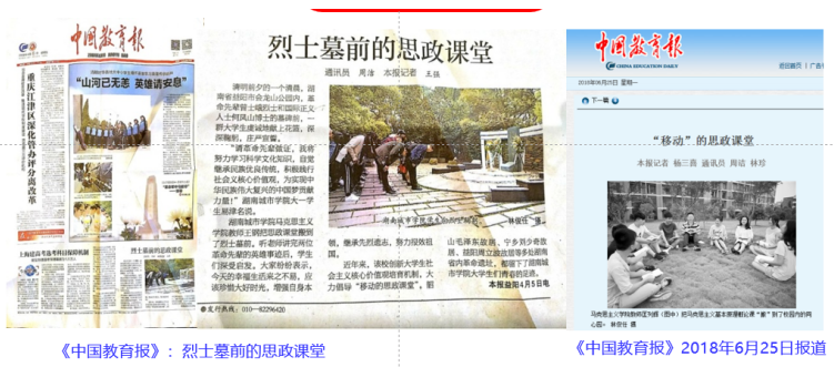 在积极参加省委教育工委组织的大学生研究性学习竞赛和大学生思想政治理论课实践教学成果展示活动的同时,以课程为单位,以培育和践行社会主义核心价值观为主题,在“微”字上下功夫,形成了“五微”实践教学模式。《中国高等教育》(2017年15/16期)、《思想理论教育导刊》(2017年12期)、《湖南日报》(2017年3月24日内参)先后推介了金年金官网思政课“五微”实践教学模式经验。