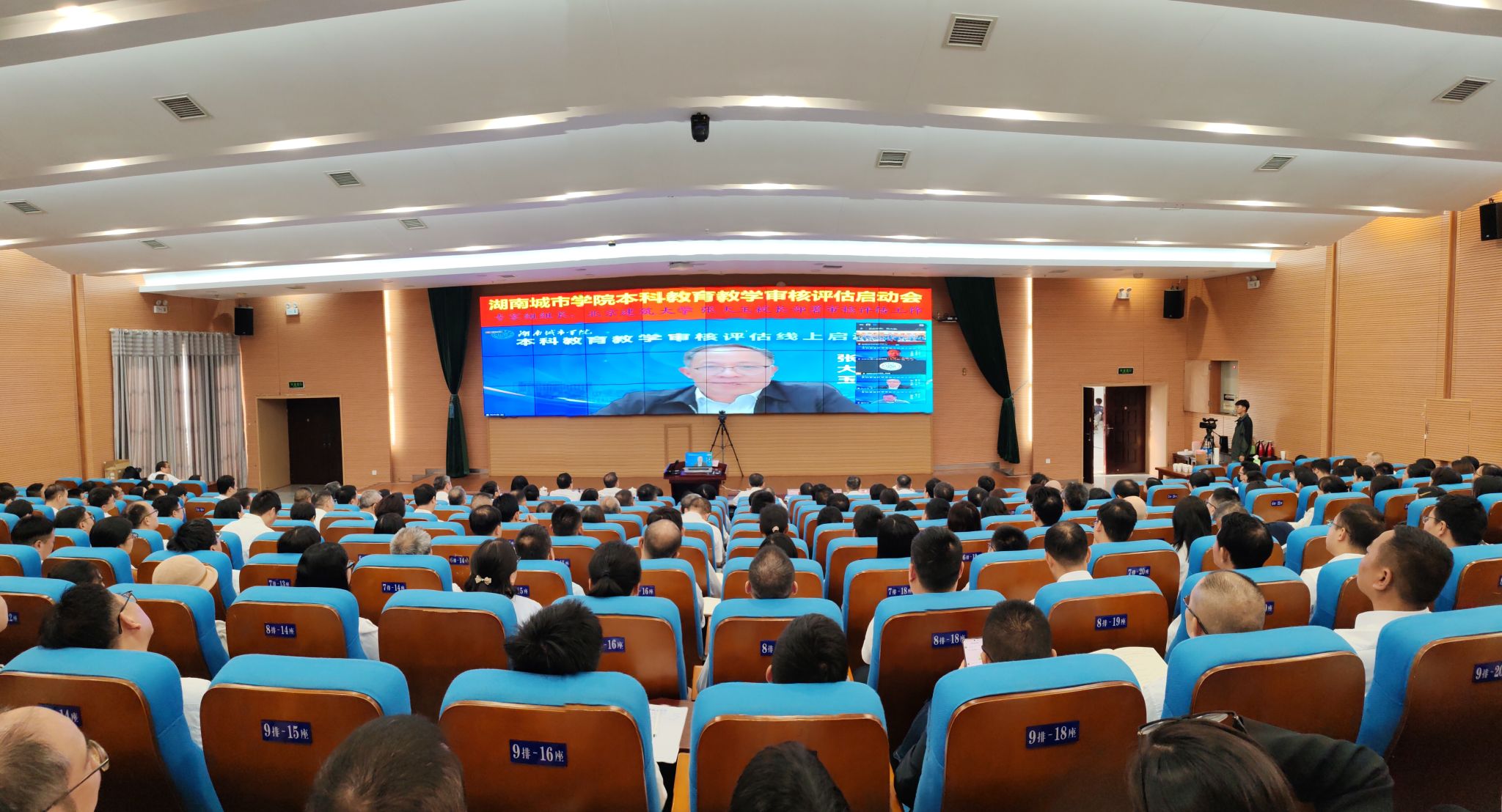 专家组组长、北京建筑大学校长张大玉,专家组全体成员,省教育厅副厅长兰勇,专家组项管、秘书线上参会。金年金官网全体校领导,副处级以上干部,各学院系室主任,评建办、教务处全体成员以及师生代表参加会议。