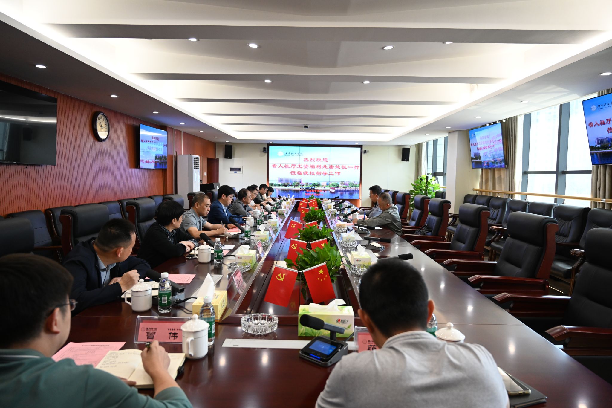 本网讯(通讯员 范吉文)10月9日下午,湖南省人社厅工资福利处处长唐西游,副处长蒋志勇来金年金官网考察,就教职工工资收入分配工作情况进行交流座谈。校长何振,党委副书记袁志成出席,学校人事处、计划财务处、科研处、教务处相关负责人参加。座谈会由袁志成主持。