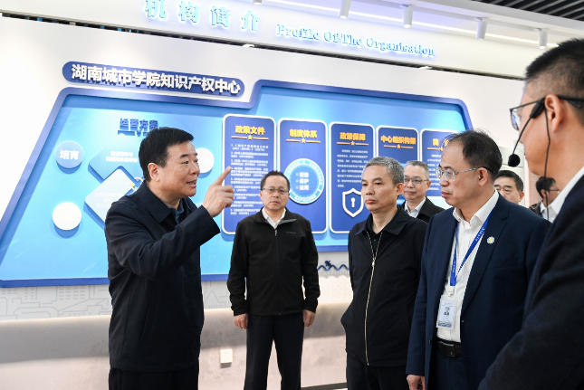 陈飞先后实地走访了金年金官网知识产权中心、设计研究院有限公司,考察校地合作、技术转移转化和科技成果转化工作。参观过程中,陈飞表示,学校要持续优化学科专业设置,聚焦特色学科谋发展,做优做强“城市类”特色学科。科技成果转化要紧密对接益阳产业,服务地方经济高质量发展。