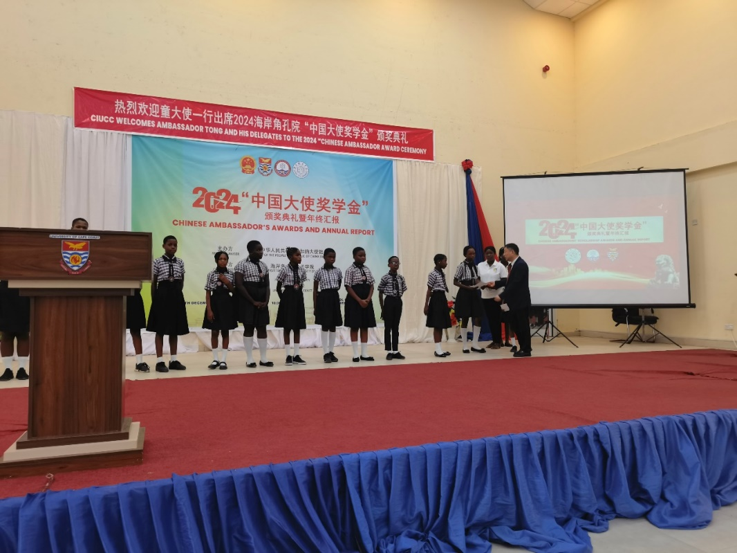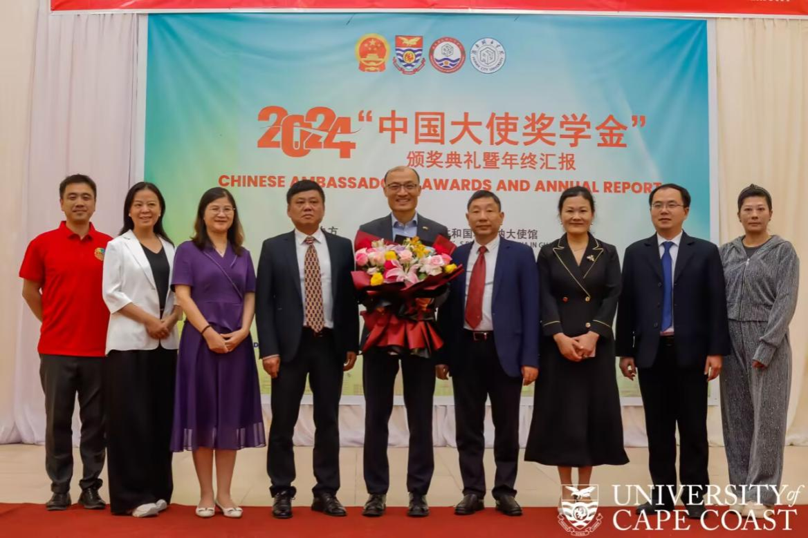 随后,代表团一行参加了2024海岸角大学孔子学院“中国大使奖学金”颁奖典礼,谭献良向中国驻加纳大使童德发及其他与会嘉宾简要介绍了金年金官网发展概况以及孔子学院取得的成果。