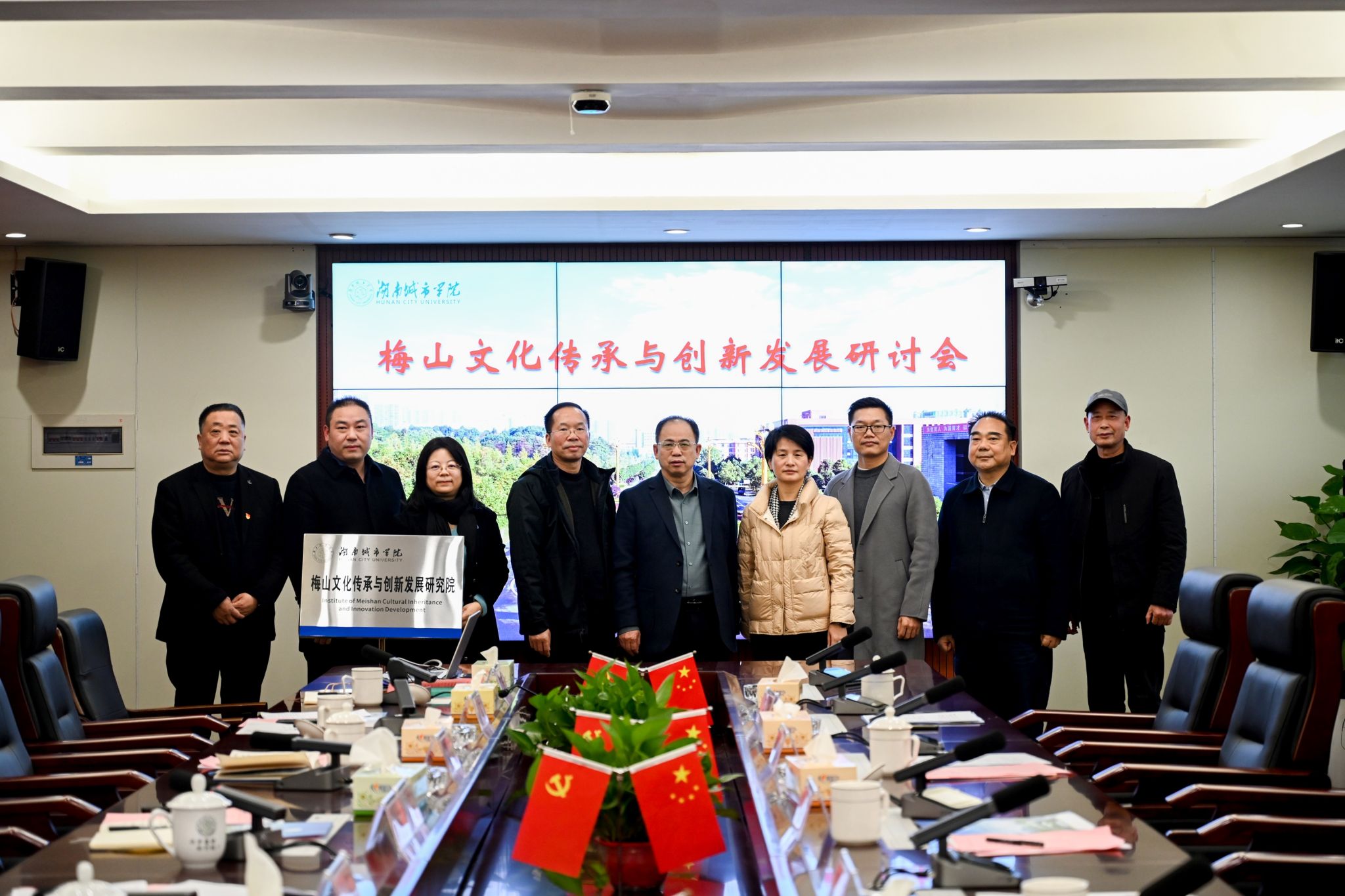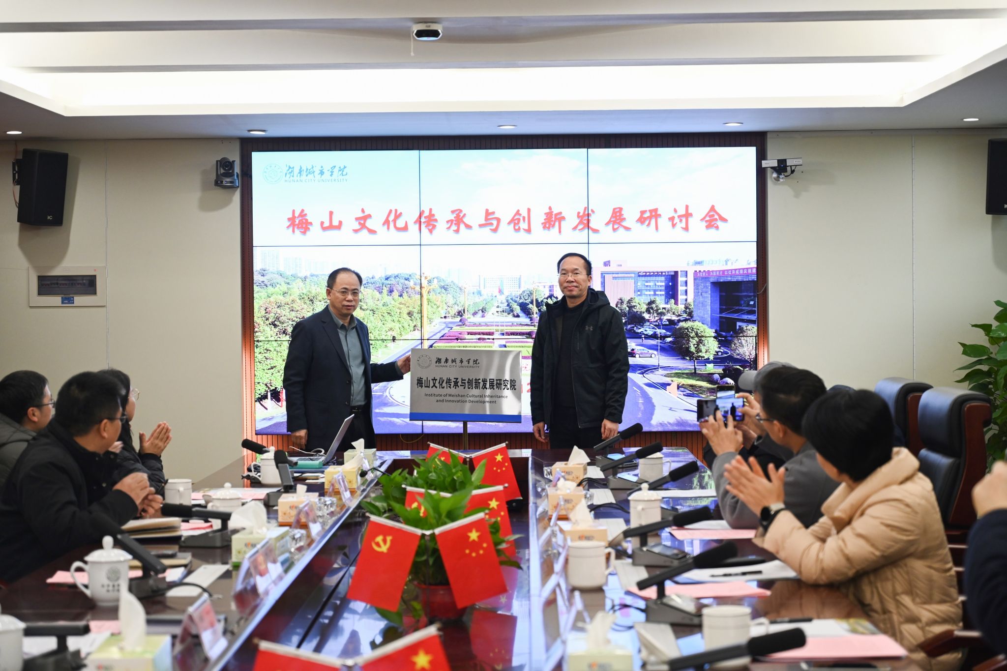 会上,金年金官网科研处处长胡科宣读了成立梅山文化传承与创新发展研究院的相关文件。在与会人员的共同见证下,何振与陈宇翔共同为金年金官网梅山文化传承与创新发展研究院揭牌。