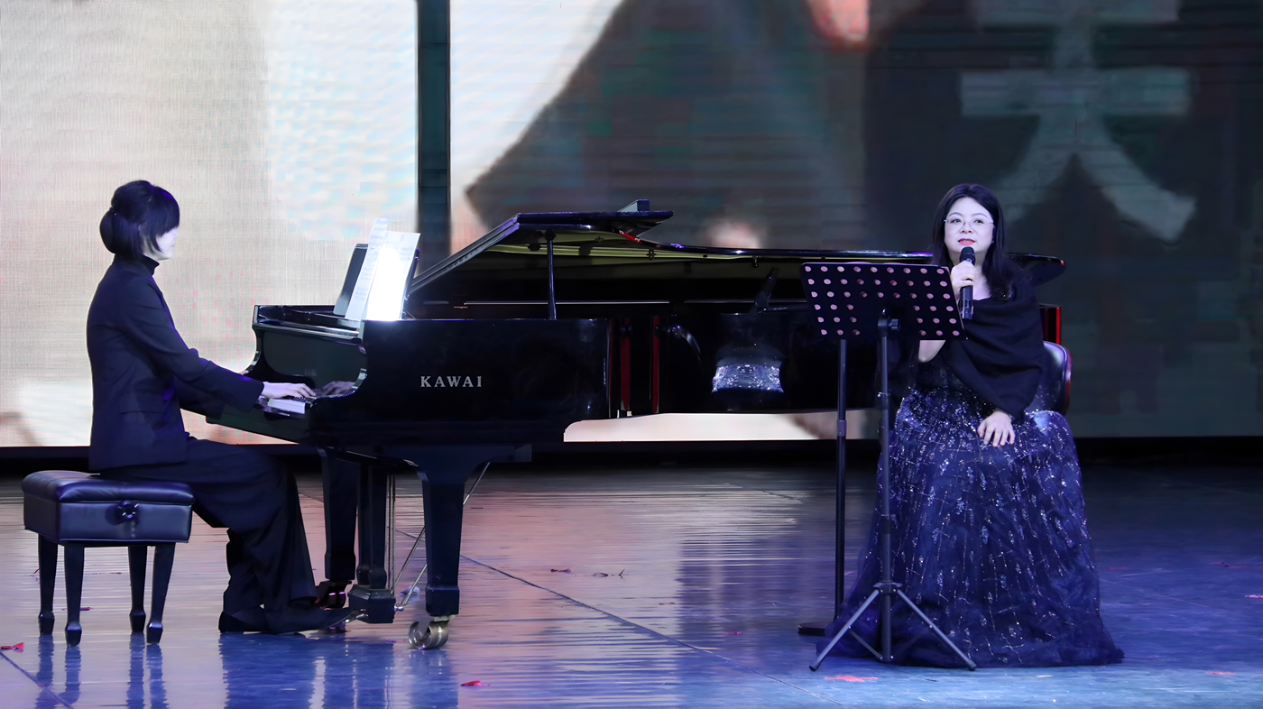 伴随着全场挥舞的校旗,大学生艺术团带来的歌曲《未来我来》展示出城院学子们积极向上的心态、勇于担当的精神、团结合作的力量和青春洋溢的风采;音诗画《山河无恙》,带领现场观众回到那个波澜壮阔的时代,去感受先辈们的热血与激情;在国风舞蹈《采薇》中,舞者们身着飘逸的汉服,在台上舞动,将观众带入了一个诗情画意的世界,穿越古今;朗诵《英雄》抑扬顿挫、跌宕起伏,讲述着无数英雄的故事,真切表达学子们拳拳爱国之心。副校长徐姝携手外籍教师孙娜一同演绎了歌曲《花火》,优美的旋律与动人的唱腔相得益彰,传达了希望与梦想的力量,她们的表演充满了真挚的情感,打动了在场的每一位观众。