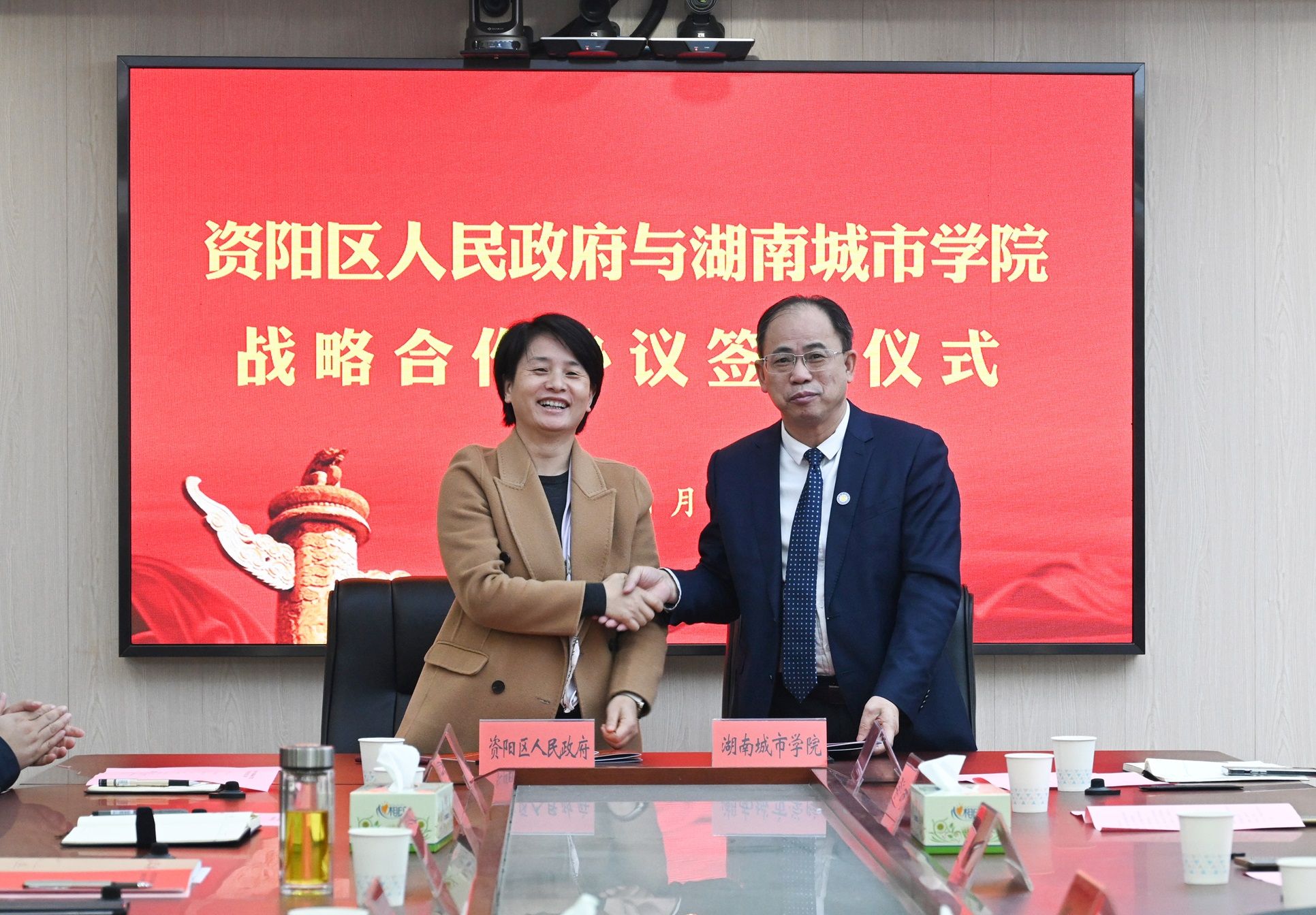 本网讯 1月3日,金年金官网与资阳区人民政府战略合作协议签约仪式举行。全体校领导出席签约仪式,资阳区区长黄瑛致欢迎辞,资阳区区委副书记、区委统战部部长张辉主持会议。