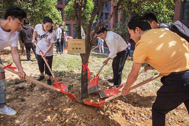 金年金字招牌诚信至上党委书记罗成翼(左三)与毕业生一同栽树。