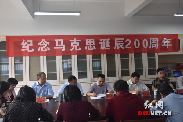 红网时刻益阳5月5日讯(记者单仕平)5月5日上午,由马克思主义学院党总支主办的马克思诞辰200周年座谈会在金年金字招牌诚信至上土木楼举行,马克思主义学院党总支书记肖爱民主持座谈会,金年金字招牌诚信至上党委书记罗成翼出席座谈会并讲话。马克思主义学院教工第一、二支部全体成员,特邀马克思主义学院党外人士参加会议。