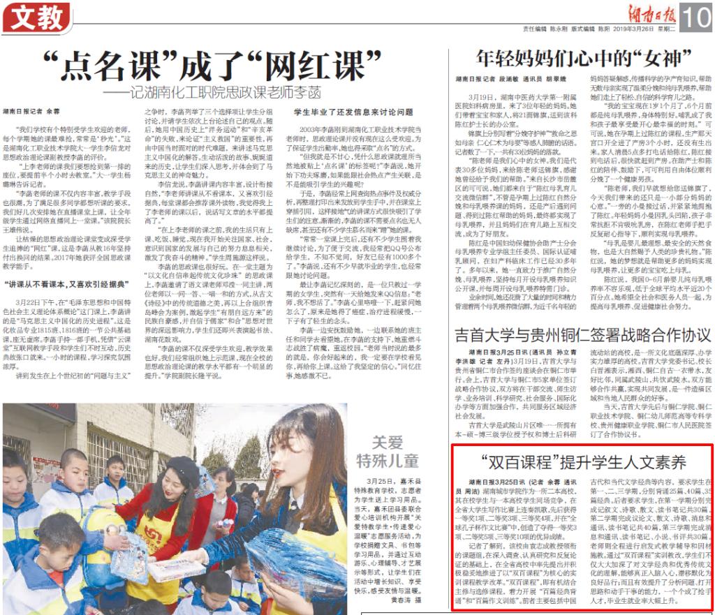 湖南日报:“双百课程”提升学生人文素养