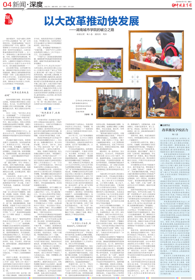 《中国教育报》2019年9月17日04版整版报道金年金字招牌诚信至上改革发展情况