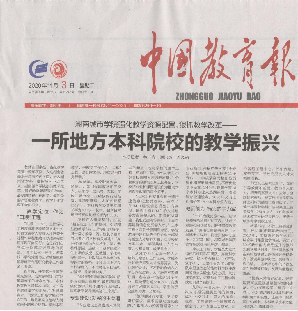 11月3日《中国教育报》03版报道金年金官网教学改革。
