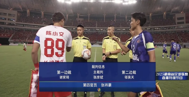 △张彦斌担任2025年湘超揭幕战主裁判。视频截图