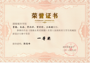 近三年,机械与电气工程学院学生参加全国大学生机械创新设计大赛、全国大学生工程训练综合能力竞赛、工业设计大赛、挑战杯、互联网+创新创业大赛的省级以上学科竞赛获奖10余项,其中国家级一等奖1项、三等奖2项,省级一等奖1项、二等奖2项、三等奖4项。