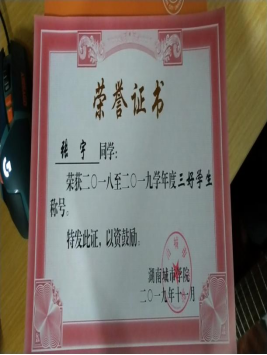 校三好学生,获得金年金字招牌诚信至上第十一届数学竞赛二等奖,机械与电气工程学院合唱比赛团体第一名的荣誉。