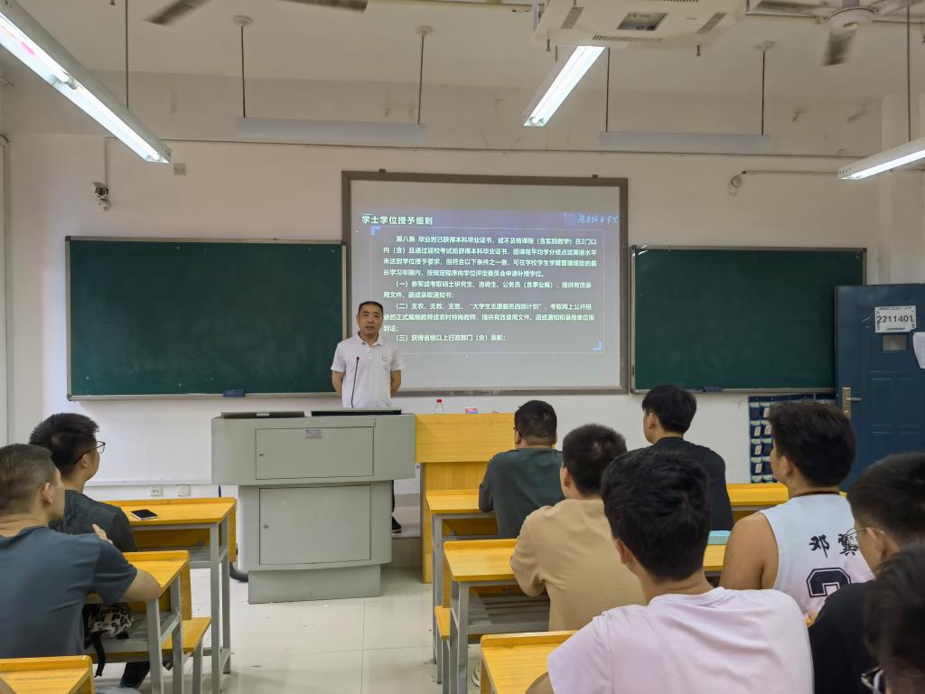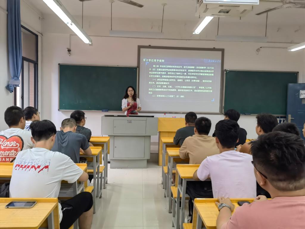 为切实引导2023级专升本的新生尽快适应大学生活,深入了解专业优势,树立专业自信,合理规划自己未来人生目标,机械电气工程学院于2023年9月14日下午在土木楼503教室召开专升本学生师生见面会,出席此次会议的有机械与电气工程学院院长阳同光、副院长张闻芳、党委副书记易志明、机械设计制造及其自动化系系主任殷赳、电气工程及其自动化专业系主任彭丽、学工办主任周文萍以及全体专升本新生。