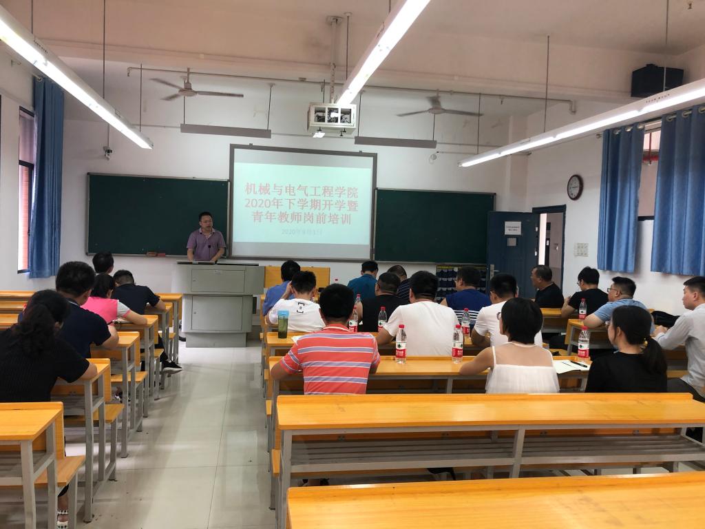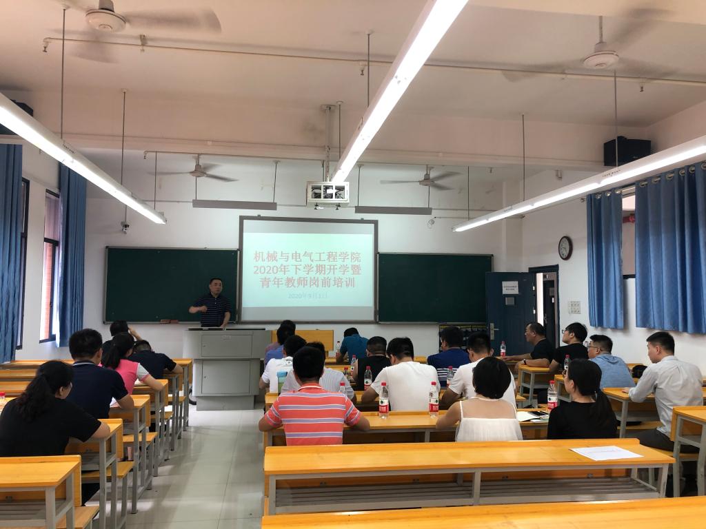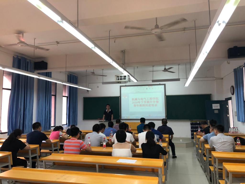 2020年下学期开学伊始,机械与电气工程学院举行了为期两天的青年教师岗前培训。培训紧紧围绕如何提高青年教师教学能力和水平以及学生管理能力,邀请了荣获湖南省课堂教学竞赛一等奖的优秀教师、优秀班主任、兄弟院系优秀学生管理干部连续举办了五场内容丰富的优秀教师公开课和学生工作经验交流会。