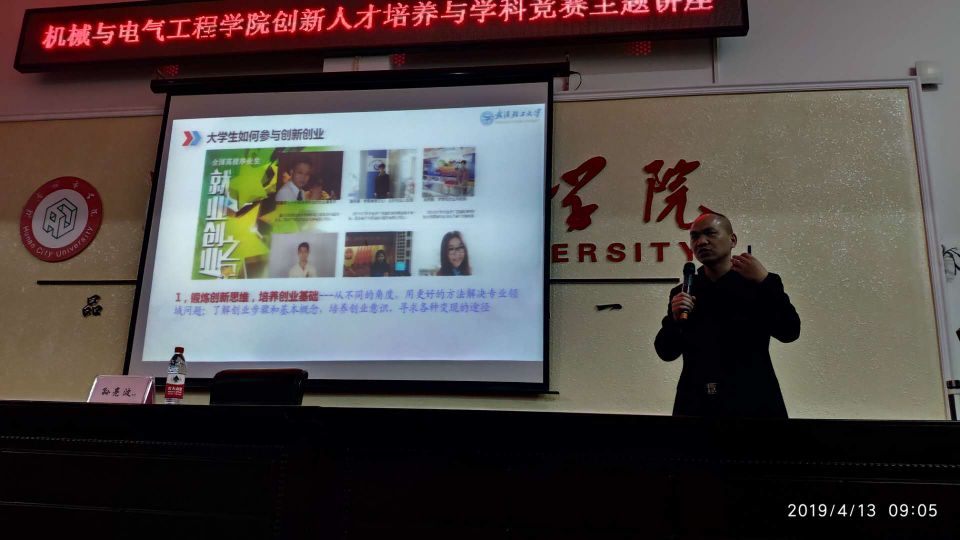 为促进创新创业教育融入专业教育人才培养全过程,营造浓厚的校园科创学术氛围,让学生深入了解并积极参加学科竞赛及创新创业相关活动。4月13日,武汉轻工大学教授、国家机械创新设计大赛首席专家孙亮波教授莅临学院为全院师生作“创新创业人才培养与学科竞赛”专题讲座,机械与电气工程学院院长阳同光教授等院领导及百余名师生听取了讲座。