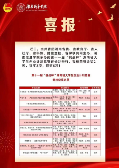 通讯员 陈长青)近日,由团省委、省教育厅、省人社厅、省科协、财信金控、省学联共同主办的第十一届挑战杯湖南省大学生创业计划竞赛终审决赛在湖南信息学院举行,我在本次赛事上共获得223充分展现了机械与电气工程学院三四四新工科人才培养模式的丰硕成果。