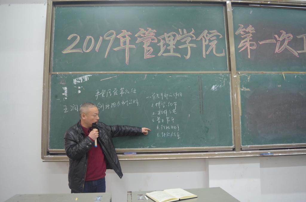 2019年是五四运动一百周年,是中华人民共和国成立七十周年,同时按学校党委行政的战略部署,2019年也是金年金官网核心竞争力攻坚、本科教学全面振兴、基层党建提质年。新学期伊始,为了更好地落实学校党委行政的任务部署,2月28日,在一教208室,管理学院召开了本学年第一次学生工作大例会。出席本次会议的有管理学院党委副书记王润华老师、蔡英杰老师;管理学院学生工作办公室辅导员曹资立老师、王方俊老师、李姗老师、熊鹏飞老师、张力老师,以及管理学院全体班干、院干参加了本次会议。