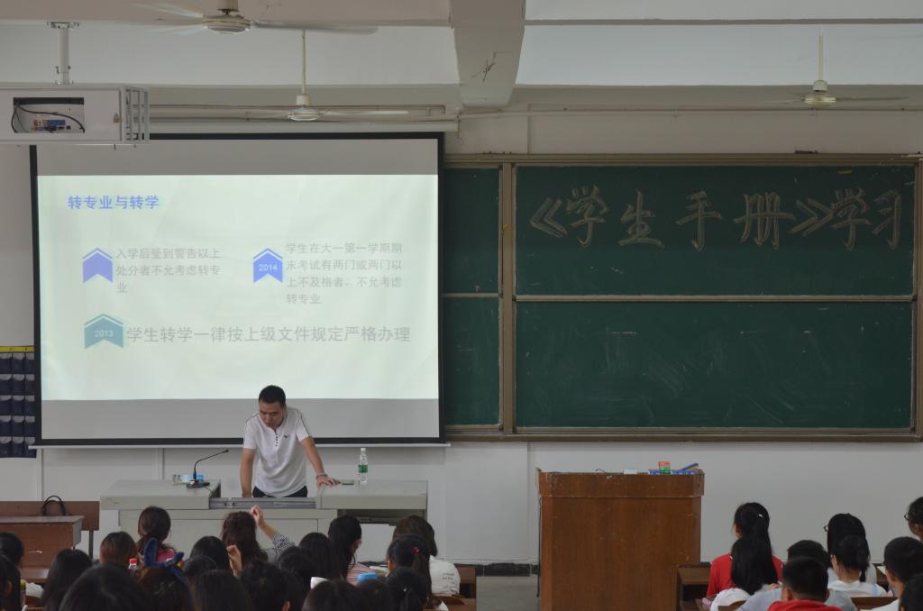 《学生手册》的学习让新生在正式的开始大学生活之前对大学的规定有了一个详细的了解,可以让他们在以后的学习和生活中更加严明自律。至此,本次《学生手册》学习活动圆满结束。