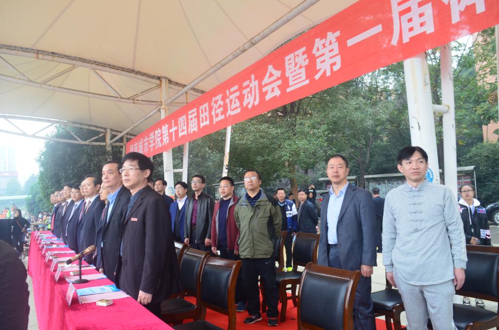 2017年11月10日,金年金字招牌诚信至上第十四田径运动会暨第一届体育文化节开幕式在田径场顺利举行。本次开幕式由学校党委委员、副校长雷存喜教授主持,出席本次开幕式的领导有党委书记罗成翼,校长李建奇,党委副书记汤放华,副校长郑卫民、何振、雷存喜、谭献良、刘辉煌、夏宏宇,党委委员罗新湘。