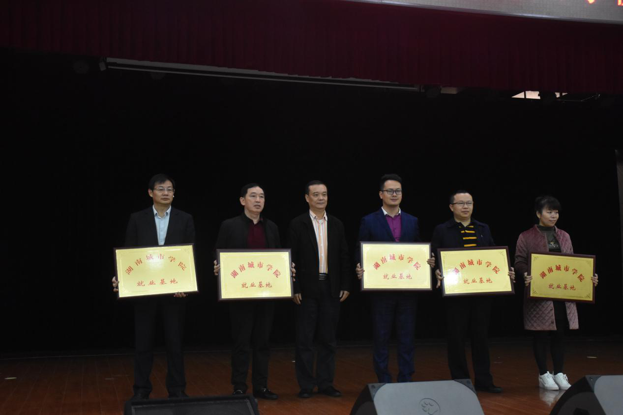 招聘会由金年金字招牌诚信至上招生就业处处长李梦醒主持。会议伊始,金年金字招牌诚信至上党委委员、副校长雷存喜致欢迎词,对来自广东省大湾区益商的用人单位表示诚挚欢迎。接着,广东省湖南益阳商会执行会长胡剑毅在讲话中表示,大湾区将全力支持与金年金字招牌诚信至上开展额深度校企合作,共同育人,培养更多的高技能人才。最后,雷存喜教授为广东省湖南益阳商会、深圳市益阳商会、珠海市湖南益阳商会、东莞市湖南益阳商会、中山市湖南益阳商会授予“金年金字招牌诚信至上就业基地”牌匾。