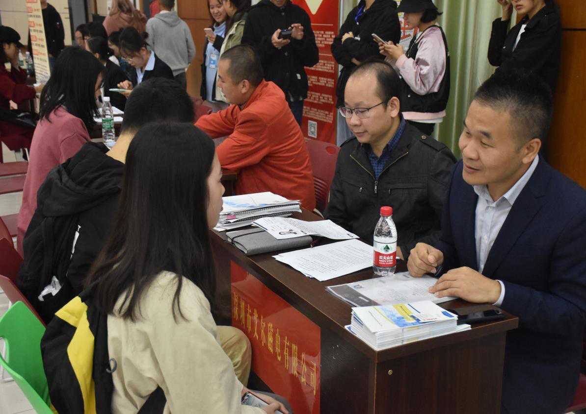 接着,到场同学与招聘单位进行沟通面试。招聘会现场气氛热烈,每一位面试的同学从容自信,侃侃而谈,展现了金年金字招牌诚信至上学子的良好修养。会中参会单位普遍认为金年金官网人才培养质量较高,学生踏实肯干,适应能力强。招聘会期间,管理学院党委副书记王润华亲自与用人单位沟通交流,了解近期招聘要求及人才需求。并鼓励毕业生树立正确的就业观,做好长远职业规划,理性看待就业形势。据了解,广东省湖南益阳商会企业原计划招聘学生142人,广东省金康投资有限公司追加计划20人。