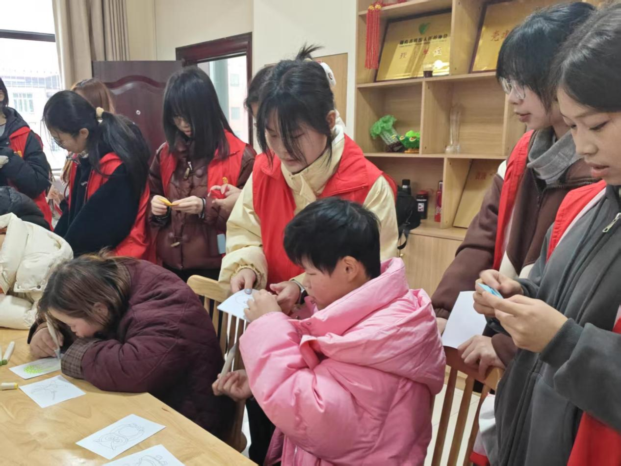 志愿者们抵达益阳市残疾人托养服务中心后,在中心负责人的带领下,有序参观助残院,了解残障人士的生活与康复状况。随后,志愿者们分工协作完成场地布置,带来魔术、歌舞、大合唱等精彩表演,残障人士也热情登台,展示自身才艺。表演结束后,双方来到手工区,一同开展折纸活动。活动中,志愿者耐心指导残障人士,彼此相互协作,将彩纸折成精巧造型。在温馨的氛围里,本次活动圆满落下帷幕。