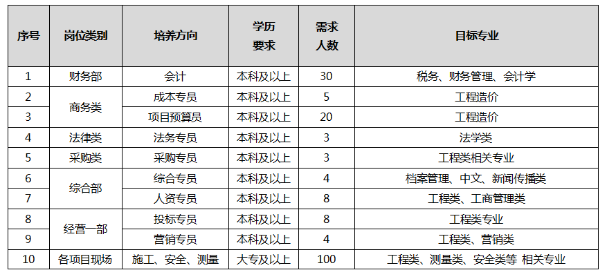 招聘专业:工程造价,工程管理,工程审计,土木类,土木工程