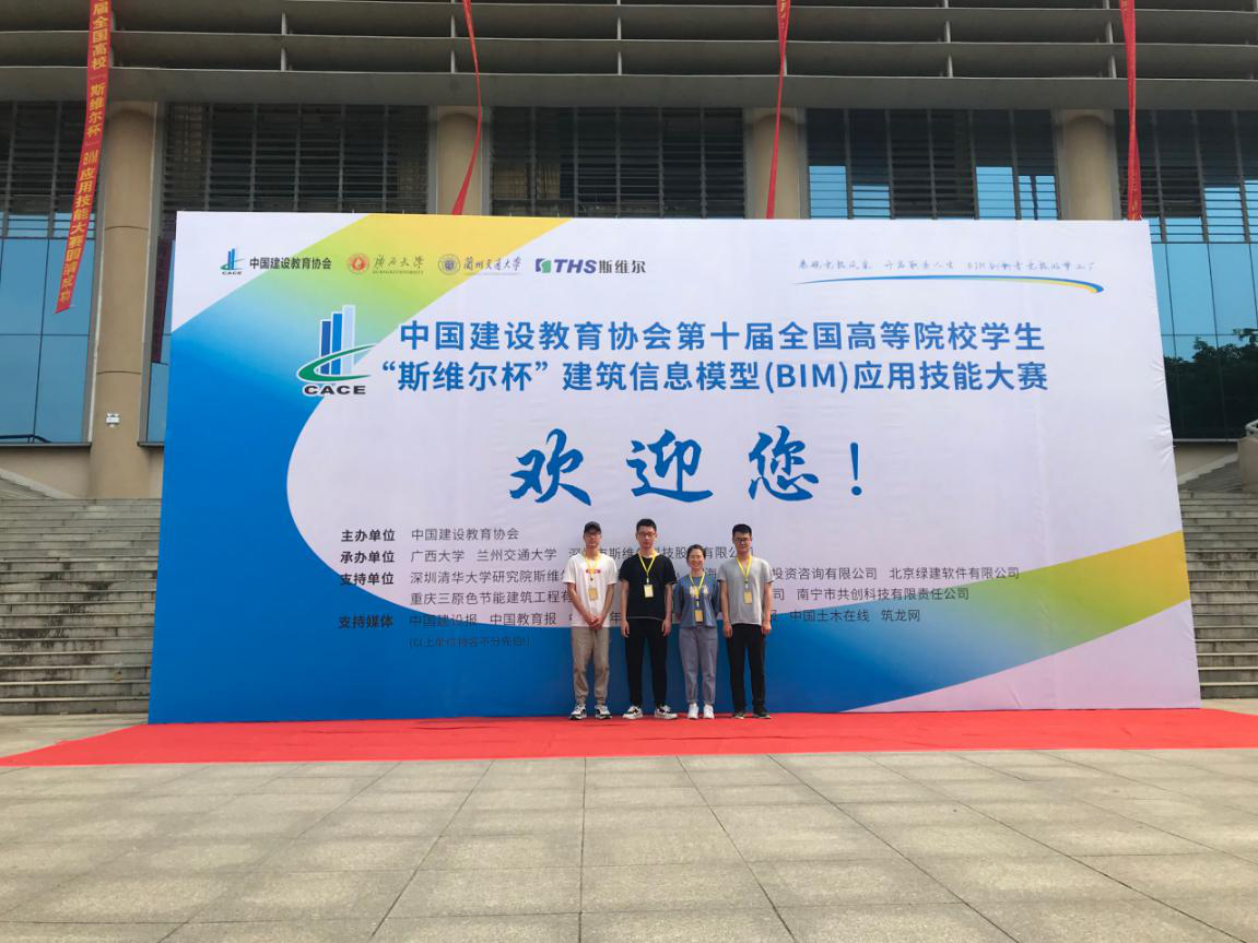 2019年5月10日-5月12日在广西南宁举行了第十届全国高等院校学生“斯维尔杯”建筑信息模型(BIM)应用技能大赛总决赛(南方赛区)。全国共有459所高校的463支代表队参加。金年金字招牌诚信至上管理学院由16级工程管理专业的高扬智、王梓维、李欣、曾桂红四位同学位组成“筑城者”战队参加决赛,取得工程管理专项竞赛三等奖、工程造价专项竞赛三等奖,获奖队数占参赛总队数的60%。向获奖学生表示热烈祝贺。