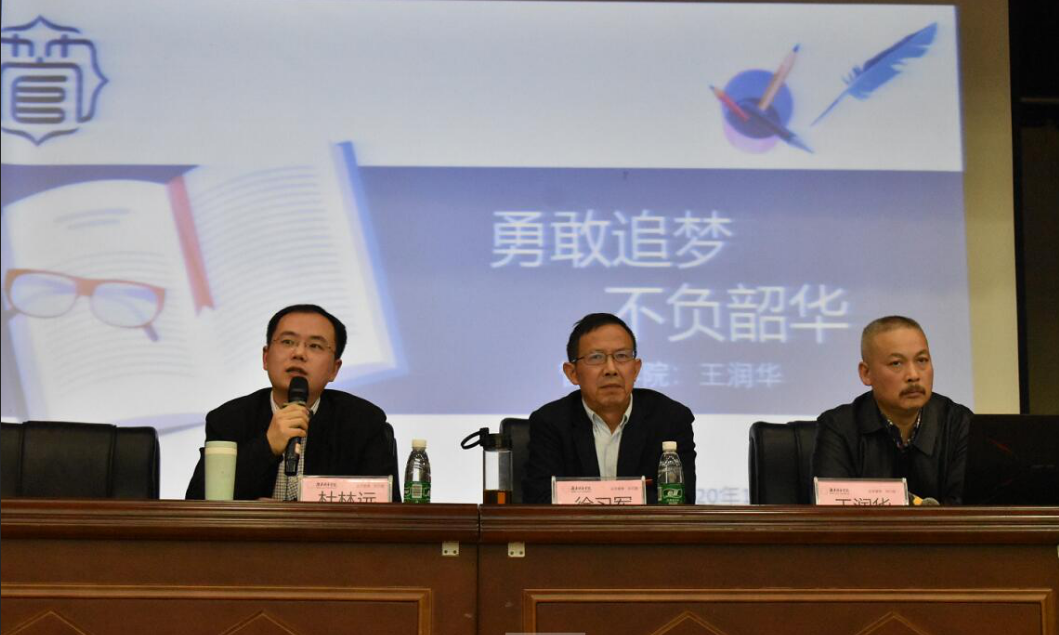 2020年11月10日晚7点管理学院于大学生活动中心举行考研动员暨辅导报告会。参加人员有管理学院党委书记徐习军教授、党委副书记王润华教授、分管教学工作杜林远博士、全体辅导员以及我院大三全体学生,会议由徐习军教授主持。