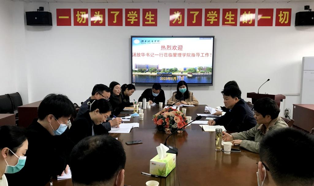 为贯彻落实中央关于在全党大兴调查研究的部署和要求,推动学习贯彻习近平新时代中国特色社会主义思想主题教育走深走实,5月11日上午,校党委书记汤放华赴管理学院调研,人事处、组织部相关成员陪同调研。管理学院领导班子成员和各党支部书记参加了调研会。