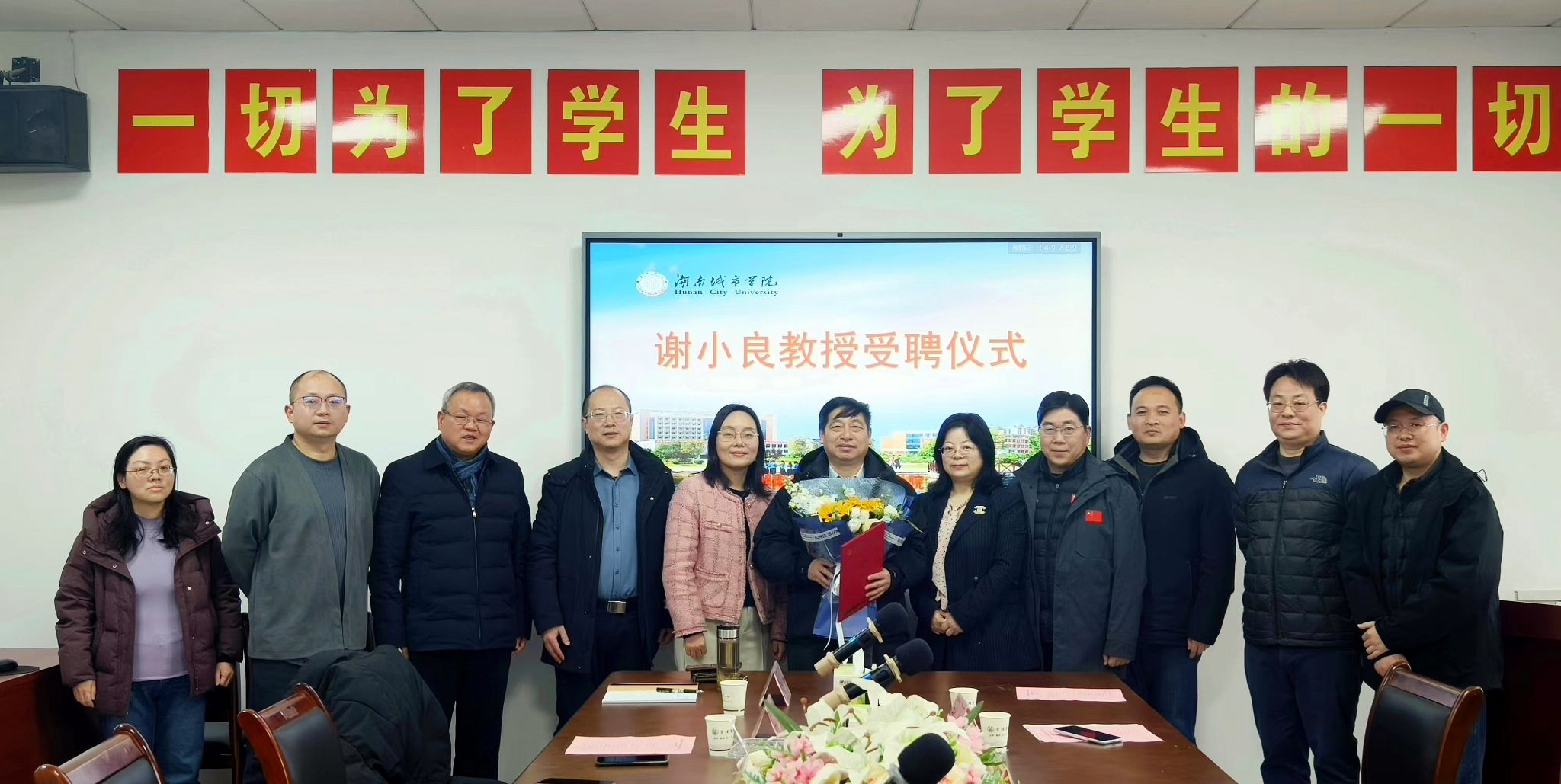 会上,汤勇介绍了与会人员,人事处处长张伟宣读了学校关于聘任谢小良教授为客座教授的决定。