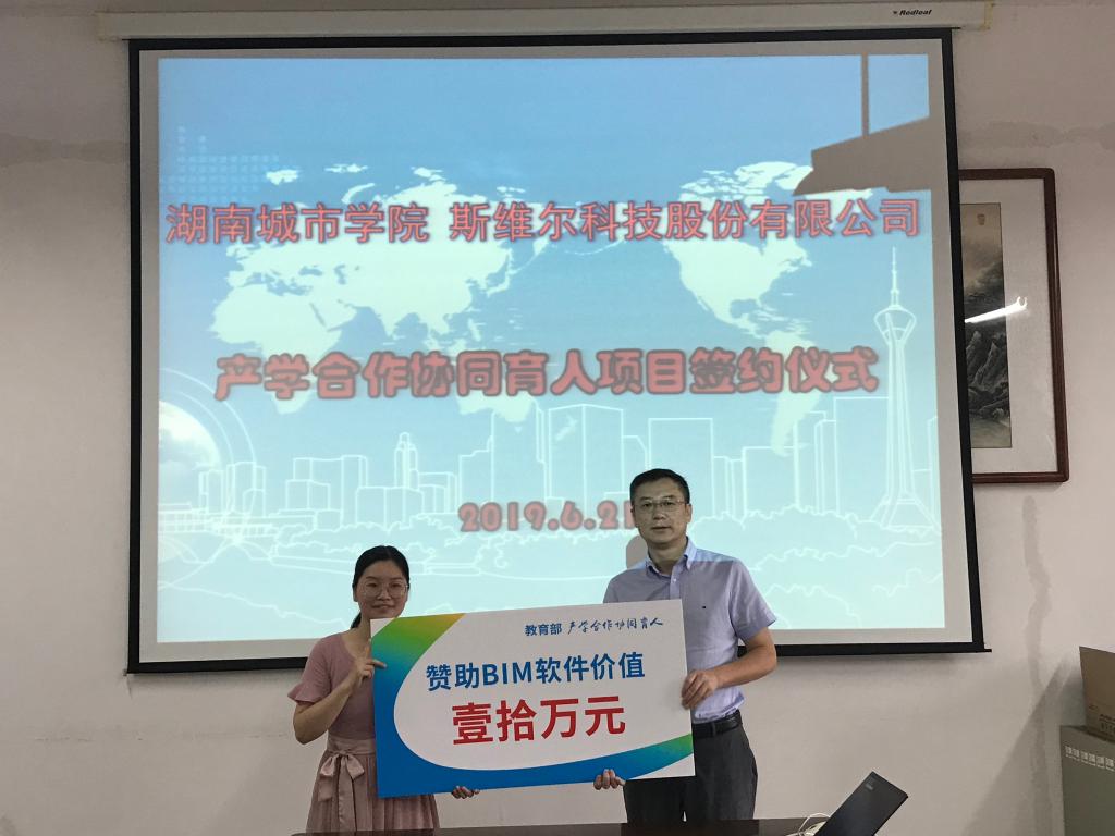 6月21日上午,金年金字招牌诚信至上与深圳斯维尔科技股份有限公司联合申报的教育部产学合作协同育人项目《以BIM技术为牵引打造工程管理专业信息化、项目化核心课程体系》签约及授牌仪式在管理楼622会议室举行。斯维尔科技股份有限公司高级副总裁樊红缨、湖南分公司总经理庄大庆、中南地区高校经理杨振及湖南分公司高校经理祝鸿宇、金年金字招牌诚信至上副校长谭献良教授、学科建设与发展规划处副处长汤勇教授、管理学院徐习军书记、孙倩院长、赵旭副院长等参加了签约仪式,仪式由管理学院院长孙倩教授主持。