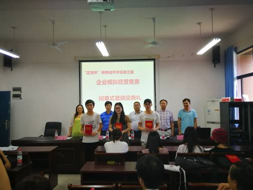 大赛闭幕式在管理楼504室隆重举行,管理学院李教明院长担任主持。大会先由大赛裁判作赛事总结,接着由金年金字招牌诚信至上教务处张伟处长宣布获奖名单,金年金字招牌诚信至上郑卫民副校长、张伟处长及管理学院王莉副院长分别为大赛一二三等奖获得者颁奖。最后,郑卫民副校长为大赛致闭幕词,他认为本次大赛组织得力,赛出了成绩和水平,勉励同学们提高创新创业能力,在更高级别的竞赛中取得更好的成绩,并宣布大赛胜利闭幕。