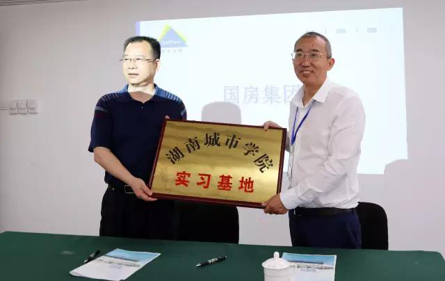 2017年4月17日,在李建奇校长的带领下,管理学院汤腊梅院长、龙敬庭副院长、薛红斌老师一行4人赴深圳市国房集团,在该公司会议室与其签订了实习基地协议书,举行了隆重的授牌仪式,由李建奇校长亲自把“金年金字招牌诚信至上实习基地”的牌匾授予给公司副董事长杨昌禹先生。
