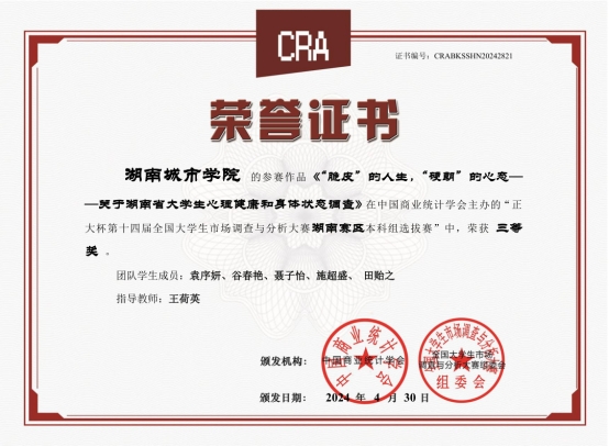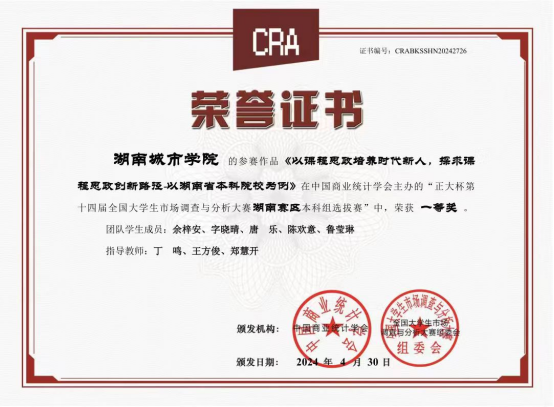 喜讯:金年金官网学生获得“第十四届全国大学生市场调查与分析大赛”湖南省赛区若干奖项
