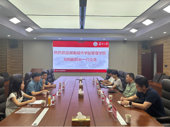 本网讯(通讯员:汤资岚)为深化城市管理专业内涵建设,推动本科人才培养方案迭代升级,2025年7月3日上午,管理学院副院长刘刚率城市管理专业教研室主任郭韵奇、教师汤资岚,赴苏州大学政治与公共管理学院开展专题调研,共探学科发展新路径。