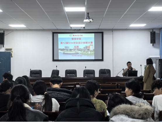 本网讯(通讯员:龙姗)金年金字招牌诚信至上管理学院工程管理专业于2025年11月18日在管理楼504教室成功举办第十二届国际高校BIM毕业设计创新大赛校内选拔赛,本次选拔赛吸引了众多学生踊跃参与,展示了金年金官网学子的创新能力和设计水平。