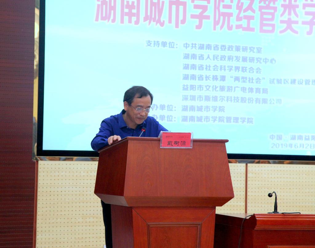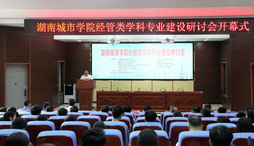 为深入贯彻落实全国教育大会精神,坚持以本为本,切实提高人才培养质量,加强金年金官网经管类学科专业建设,6月2日管理学院承办了由学校主办的经管类学科专业建设研讨会。研讨会开幕式在建筑规划楼举行。应邀出席开幕式的有湖南省委政策研究室、中国致共党湖南省委员会、湖南省人民政府发展研究中心、湖南省社会科学界联合会、湖南省长株潭“两型社会”试验区建设管理委员会、益阳市城市管理行政执法局、益阳市房地产管理局、益阳市文化旅游广电体育局等单位的领导,以及深圳市斯维尔科技股份有限公司、湖南泽华私募股权基金管理有限公司等单位负责人。出席会议的学校领导有校长李建奇、党委副书记汤放华、副校长郑卫民、副校长谭献良等。参加会议的还有教务处、人事处、科研处、学科建设与发展规划处领导,以及管理学院全体教职工和学生代表共150余人。