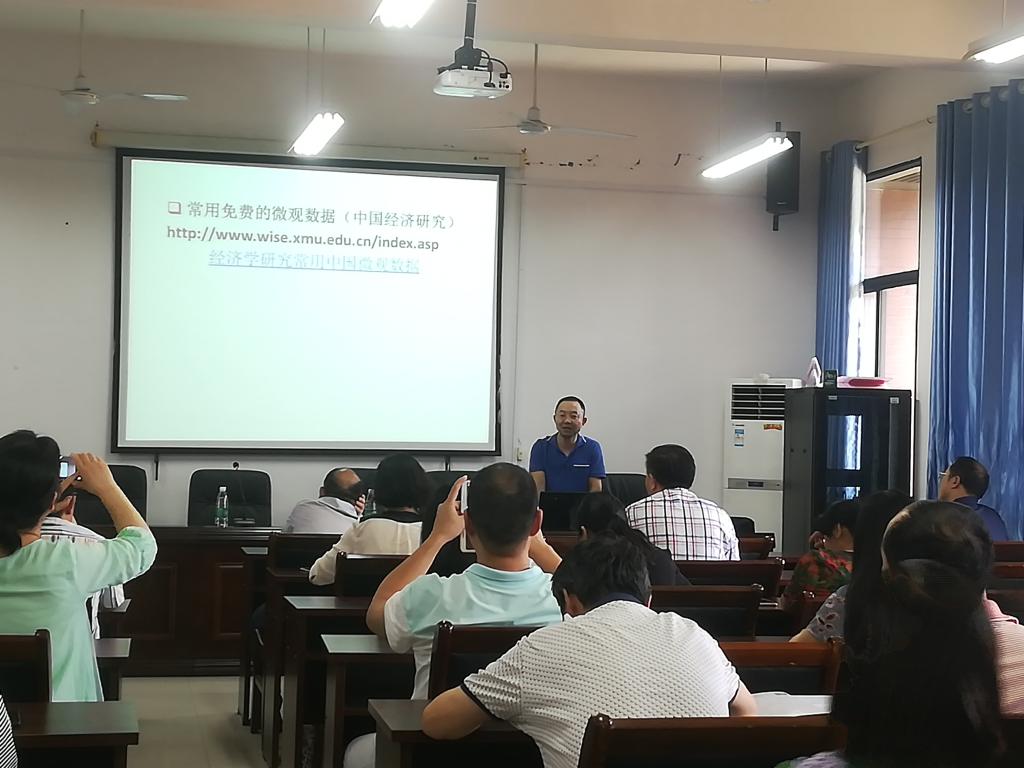 在管理楼514会议室,傅十和教授向我院教师展示了科学研究的基本要求,重点介绍了经济学研究论文选题、数据收集方法、一般经济学论文的常用分析方法及英文论文撰写规范,并强调研究的兴趣导向。